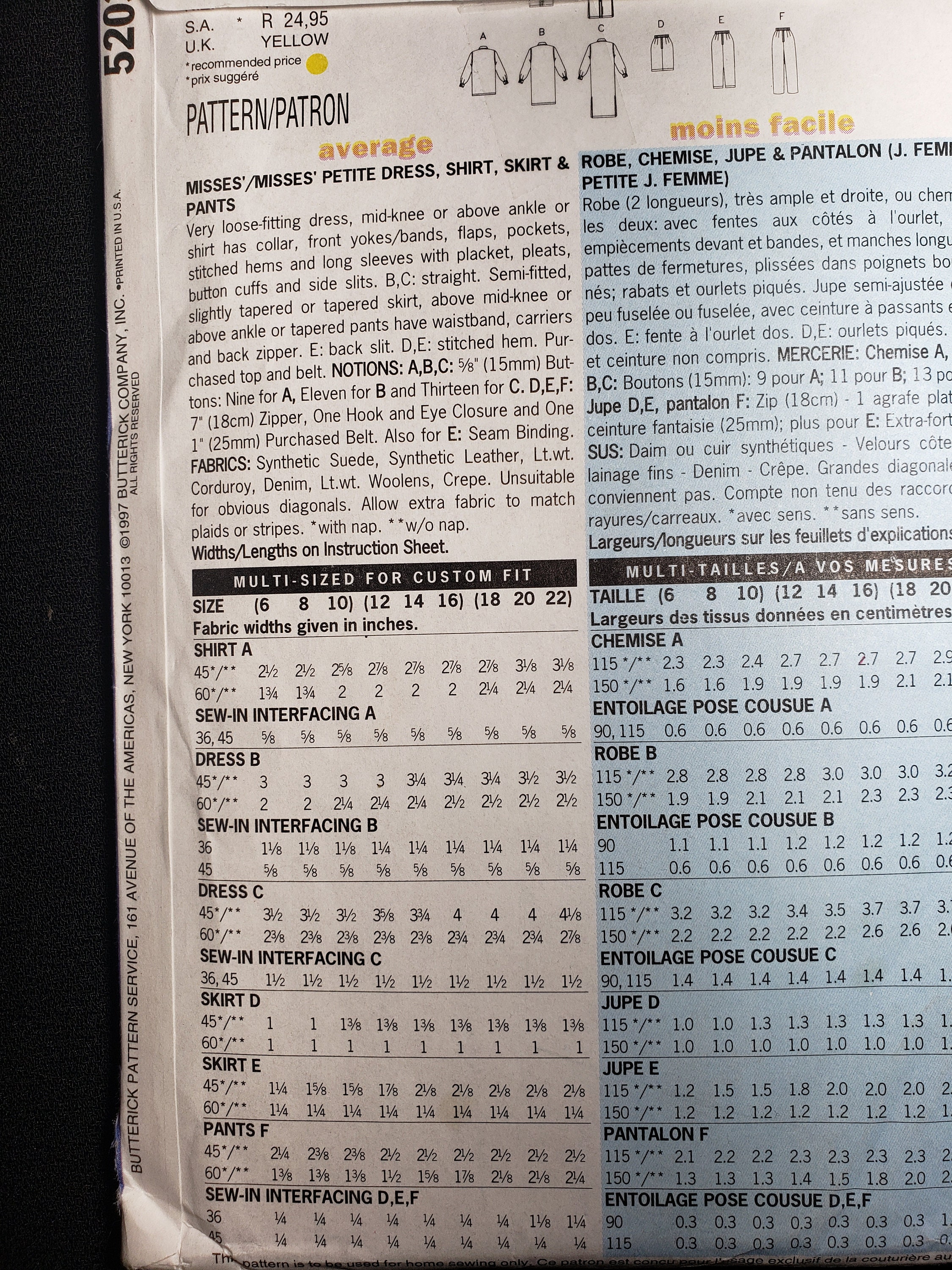 Butterick 5203 Misses Misses Petite Dress Shirt Skirt Pants 12 16 Uncut Pattern 31664262800 Ebay
